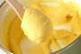 もったりとかたくなってきたら、卵黄と無塩バターを加えて手早く混ぜ、火からおろす。