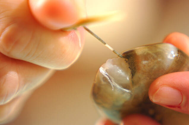 エビは皮付きのままよく洗い、竹串で背ワタを取っておく。