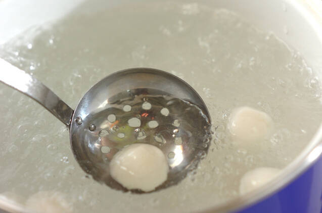 (1)をひとくち大に丸めてたっぷりの熱湯に入れ、浮いてきたら水に取る。