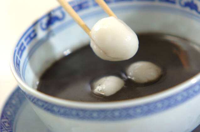 器に冷やした<黒ゴマ汁>を入れ、水気をきった<白玉団子>を加える。