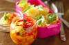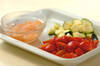 プチトマトはヘタを除き、4等分に切る。ズッキーニは1cm角に切る。むきエビは粗みじん切りにして、白ワインをまぶす。