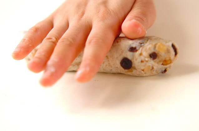 生地をやさしく転がしながら20cm位の棒状にのばす。