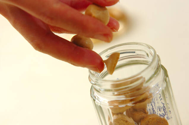 瓶に乾燥材と一緒に入れます。湿気を吸うとベチャっとするので注意!柄が素敵なマスキングテープにメッセージを書いて、蓋に貼っておしゃれに封をします。