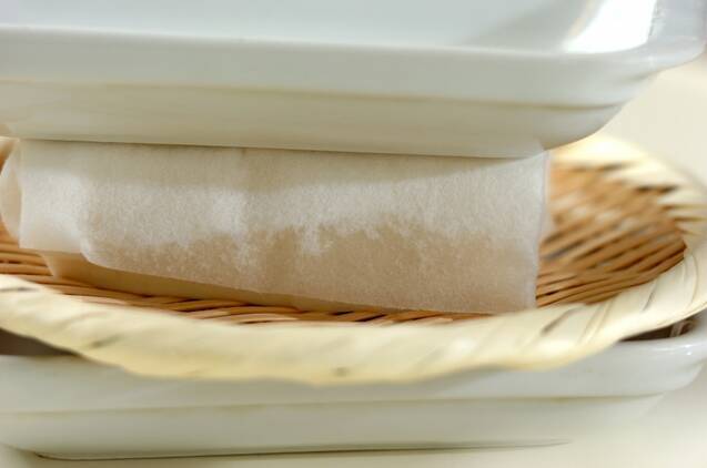 豚バラ肉は長さ4cmに切る。木綿豆腐はキッチンペーパーで包み、重しをして15分置き、水気をきる。玉ネギは縦薄切りにする。ニンジンは皮をむき、拍子木切りにする。