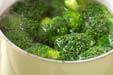 たっぷりの熱湯でブロッコリーをゆでてザルに上げ、水気をしっかり切る。