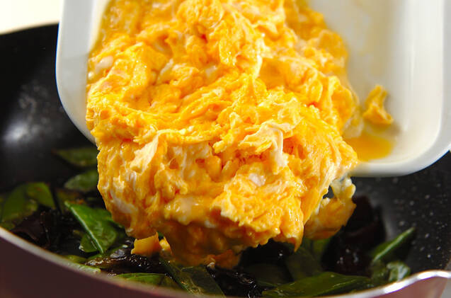 ゴマ油香る!キクラゲとキヌサヤの卵炒め(ムースーロー)