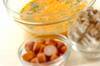 小さめのフライパンにサラダ油を中火で熱し、ジャガイモ、玉ネギ、シメジ、ソーセージを炒める。