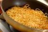 8割程度火が入ったら白ネギを加えて炒め、取り出しておいた焼きそば用中華麺をほぐして加えて混ぜ合わせる。