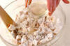 スプーンでひとくちサイズにして170℃の揚げ油に入れ、サクッと揚げる。大根おろしを入れた<天つゆ>につけていただく。