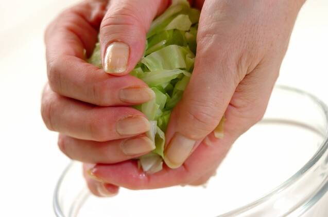 キャベツから水分が出てくるので、再度ギュッと絞って水分を出す。