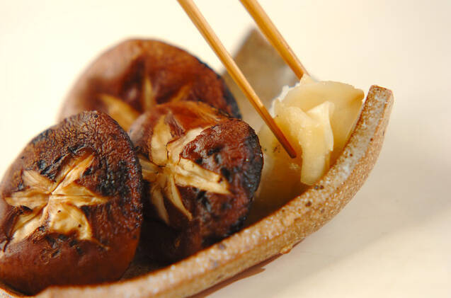 シイタケを盛り、大根おろし、甘酢ショウガを添える。