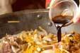 ジャガイモがしんなりすれば、牛肉を戻して全体に混ぜ合わせる。カレー粉、ウスターソースを加えて全体にからめ、塩コショウで味を整え、器に盛る。