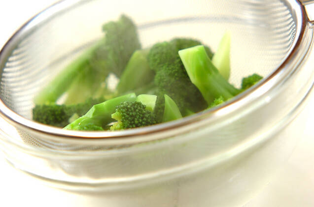 ブロッコリーは小房に分け、分量外の塩を入れた熱湯でゆで、水気をきる。