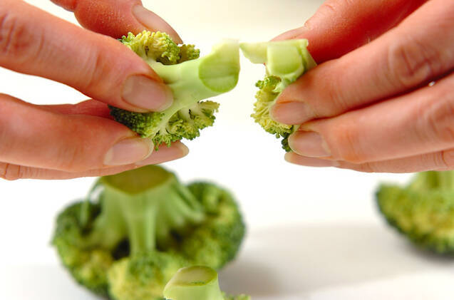 ソーセージを4等分に切る。ブロッコリーは小房に分け、ラップで包んで電子レンジ(600W)で1分加熱する。