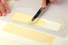 <カスタードクリーム>を作る。バニラビーンズは縦に切り裂いて中の種を取り出し、鍋にサヤと共に入れ、牛乳も加えて沸騰直前まで温める。