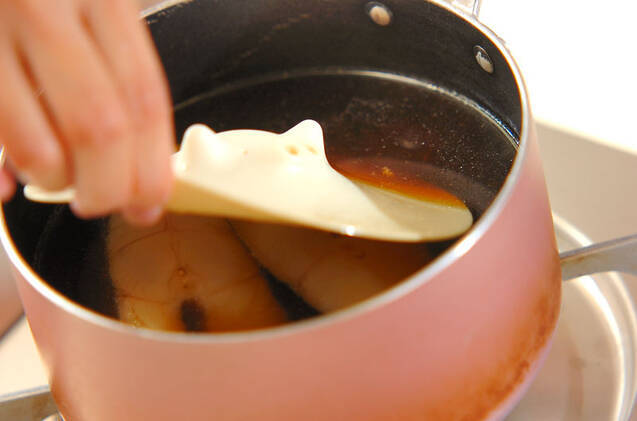 落とし蓋をし、煮たったら火を少し弱め、鍋の蓋をして15~20分煮る。