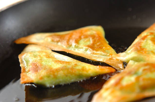 フライパンにサラダ油を熱し、(1)を両面こんがりと揚げ焼きにし、器に盛る。