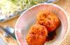 フードプロセッサーに水切りした木綿豆腐と<下味>、大和芋、卵黄を混ぜ合わせ、固さを調整しながら小麦粉を加え合わせ、8等分に分ける。(具を入れてまとまる程度のかたさが目安です)