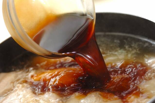 大根が透き通ってくれば<調味料>を加え、大根が美味しそうなこっくり色になるまで12~15分位煮る。