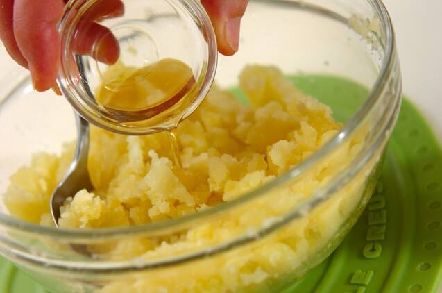 お好みの程度に(2)を潰し、酢、塩コショウで下味をつけて粗熱をとる。