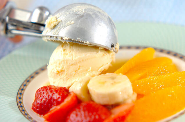 熱くなったら取り出して器に盛り、バニラアイスをのせてミントの葉を飾る。