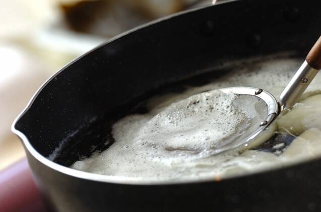 鍋に昆布、大根、ヒタヒタの水を入れ、強火にかける。煮立てば昆布を取り出してアクを取り、中火で20分煮る。