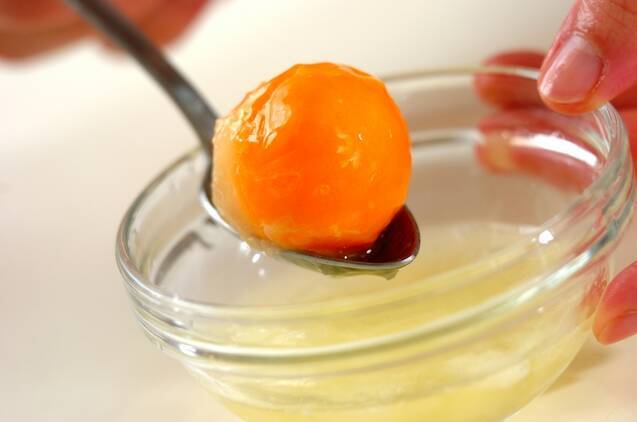玉ネギはみじん切りにする。卵は1つずつ殻のまま、ラップに包んで冷凍する。完全に凍ったら、流水にあてながら皮をむく。半解凍し、黄身と白身に分ける。サニーレタスは食べやすい大きさにちぎる。