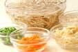 油揚げは熱湯に通して油抜きをし、粗熱がとれればニンジンに合わせて細切りにする。