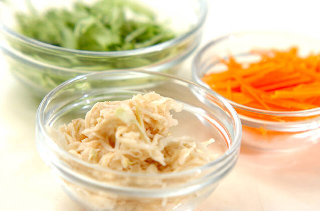 切干し大根はサッと洗って、たっぷりの水に10分つけて水気を絞り、長い場合は食べやすい長さにザク切りにする。