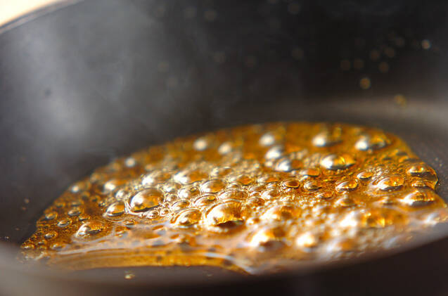 フライパンに砂糖と水を入れて中火にかけ、キャラメル色になったらバナナとバターを加えてからめる。