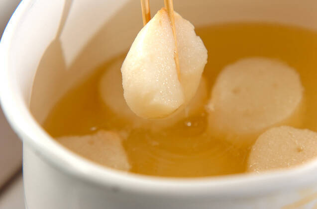鍋にだし汁を入れて強火にかけ、煮たったら麩を加える。
