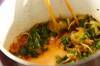 鍋にセロリの葉、セロリ、<調味料>の材料を入れ、鍋に蓋をして中火にかける。煮たったら弱火にしてしんなりするまで蒸し煮にする。
