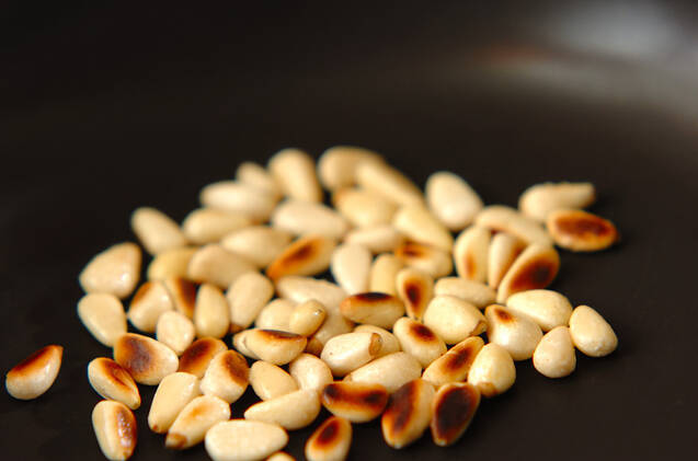 松の実はフライパンで香ばしく煎って冷ます。