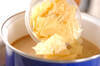 鍋にだし汁を入れて強火にかけ、煮立ったら火を弱め、みそを溶き入れ、乾燥湯葉を加えて火を止める。