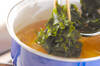 モロヘイヤと鶏ささ身のゴマ和え ワカメスープ