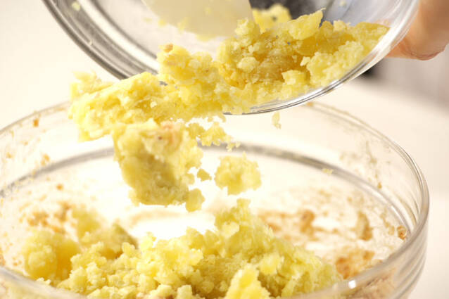 ボウルに<和え衣>の材料を混ぜ合わせ、サツマイモを加えてさらに混ぜ合わせ、器に盛る。