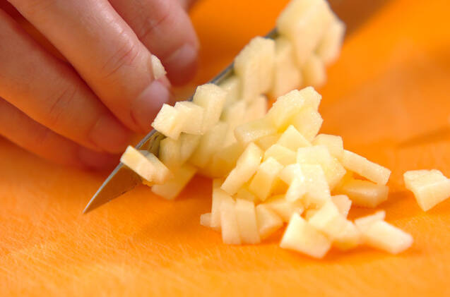 リンゴは皮と芯を取り除き、みじん切りにする。