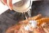 鶏手羽中をキッチンペーパーにのせ、軽く汁気を切る。
