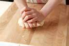 粉っぽさがなくなれば(生地はベタベタしています)、手のひらの付け根に体重をかけながらしっかりこねる。滑らかになってくれば台に出し、手前から向う側に押すように手のひらの付け根に力を入れながら約10分こねる。
