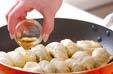 すぐに蓋をして、弱めの中火で約6~7分蒸し焼きにする。次に蓋を取って強火にし、水気を完全に飛ばし、最後にゴマ油を加えてカリッと焼く。お好みに合わせた<つけダレ>をつけていただきます。