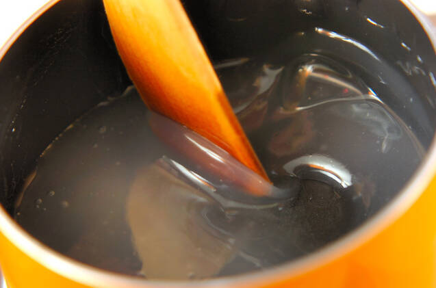 (1)の小鍋を中火にかけ、木ベラで混ぜながら透明になってトロミがつくまで火を入れる。紅茶を加え、よく混ぜる。