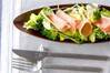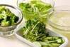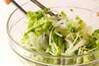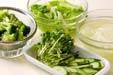 プリーツレタスは食べやすい大きさにちぎって冷水に放ち、パリッとすれば、水気を切る。