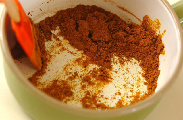 <練りカレー>のスパイス類を混ぜ合わせ、水を少しずつ加えながら練る。