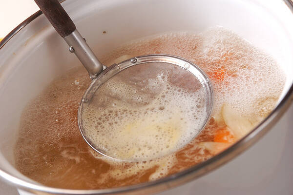 鍋に水切りした小芋、大根、ニンジン、ゴボウ、だし汁を加えて強火にかけ、煮立てば火を弱める。アクを取りながら、具が柔らかくなるまで10分位煮る。