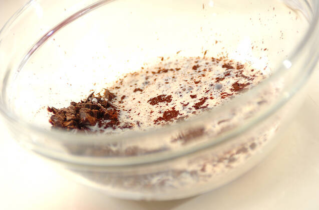 <ガナッシュ>を作る。生クリームを沸騰直前まで温める。刻んだチョコレートに生クリームを注ぎ、真ん中から泡立て器でそっと混ぜる。サンドしやすい固さになるまで涼しいところにおいておく。