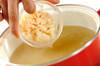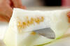 冬瓜は皮をむいて種とワタを取り出し、食べやすい大きさの薄切りにする。
