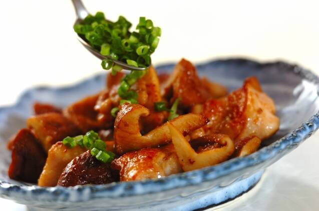 (2)に混ぜ合わせた<調味料>の材料を加えて炒め、器に盛って刻みネギを散らす。
