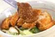 丼にご飯を入れ、キャベツ、<野菜炒め>、食べやすい大きさに切った3のチキンカツをのせ、<ゴマみそソース>をかける。