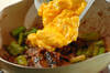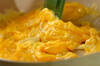溶き卵に塩を合わせ、サラダ油大さじ1を熱したフライパンに流し入れる。大きく混ぜて半熟に火を通し、いったん取り出す。