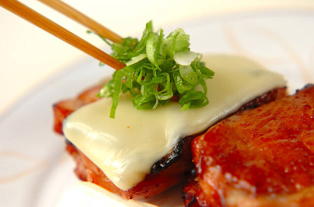 器に(3)を盛り合わせ、スライスチーズには刻みネギをのせる。